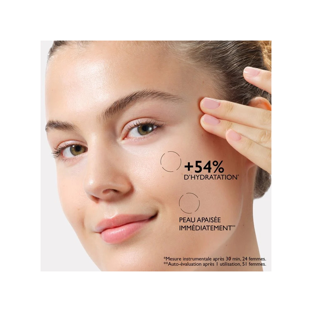 Dès la 1ère application, l’hydratation de la peau augmente de 54%*, elle est instantanément apaisée et confortable.