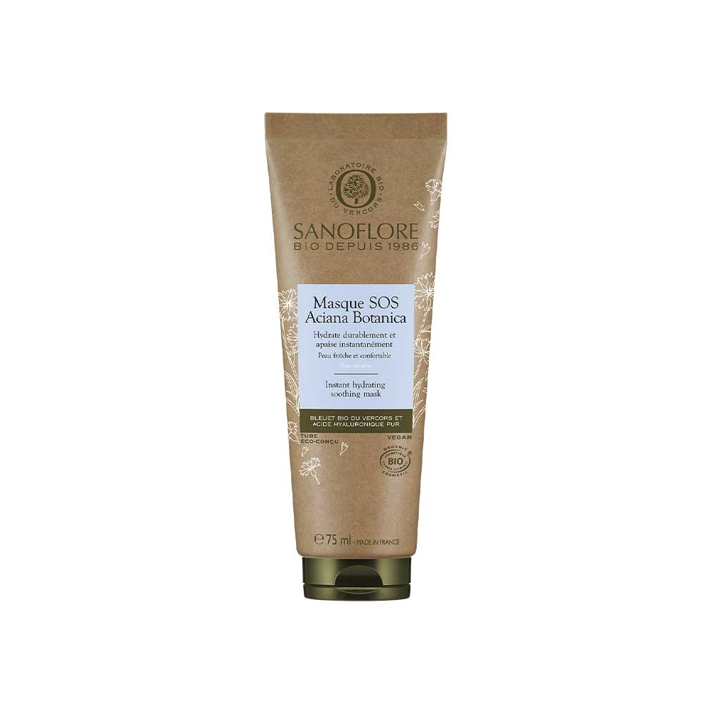Le Masque SOS Aciana Botanica est un masque hydratant et apaisant pour le visage, conseillé pour les peaux sensibles et réactives normales à sèches.
