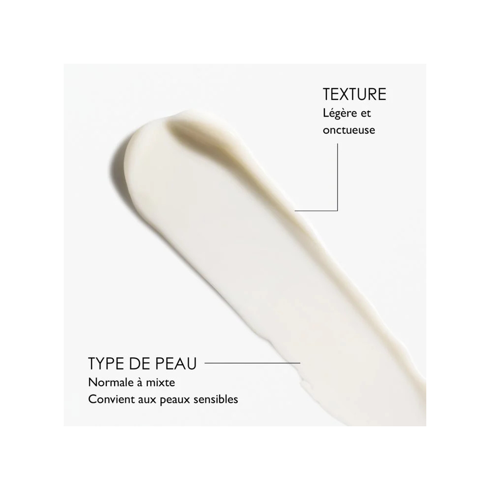 Cette crème vient lisser visiblement les traits, lutte contre le relâchement cutané tout en apportant confort et hydratation à la peau tout au long de la journée.