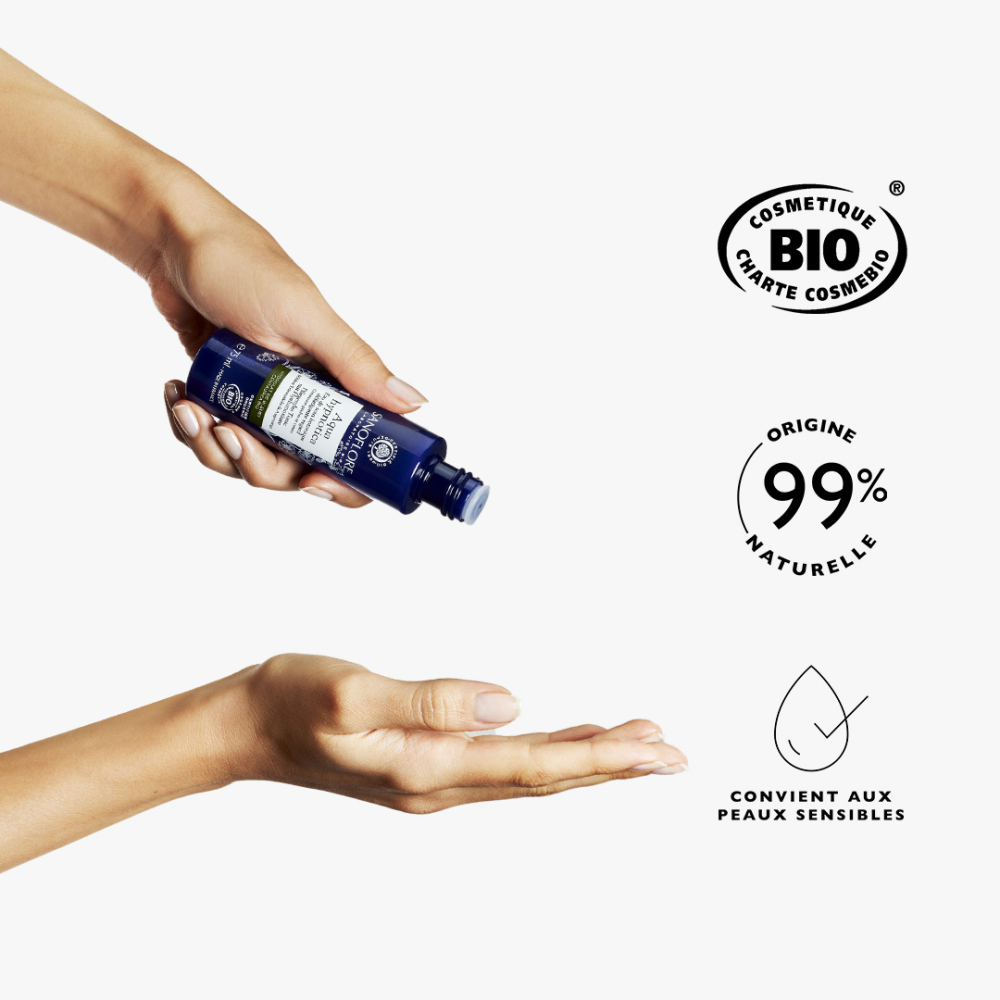 À la base de cette efficacité réside une sélection minutieuse d'ingrédients d'origine naturelle, parmi lesquels l'Hydrolat de Bleuet Bio, reconnu pour ses propriétés apaisantes et calmantes.