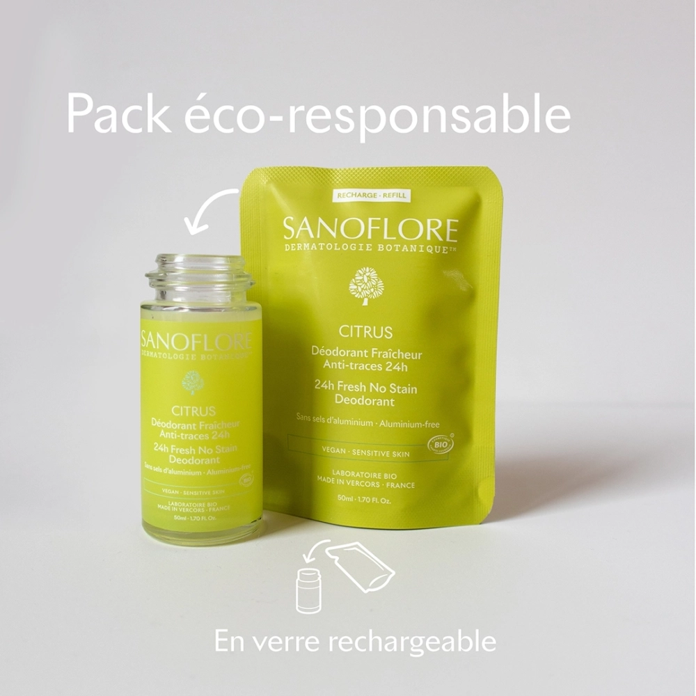 Pack Déodorant + Recharge Citrus 24h certifié bio. 99% d'origine naturelle