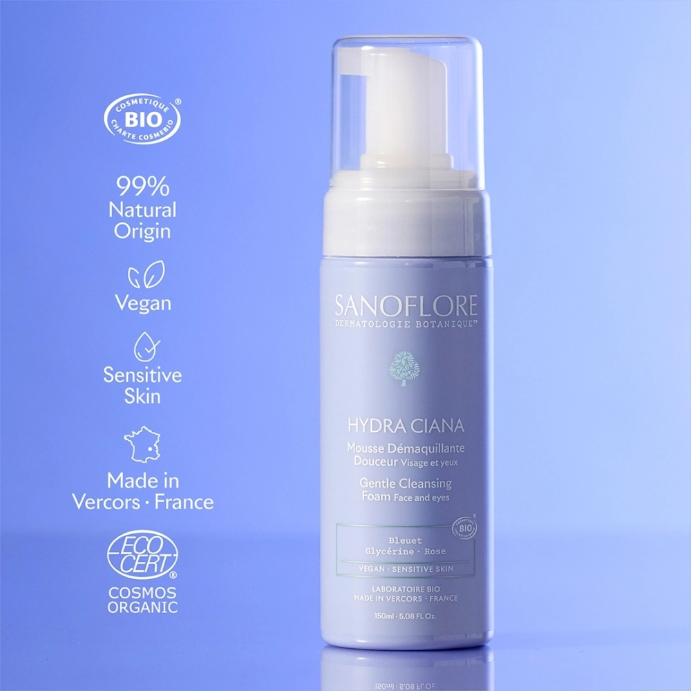 Le Lait Démaquillant HYDRA CIANA est un soin vegan formulé à 99 % d’ingrédients d’origine naturelle.