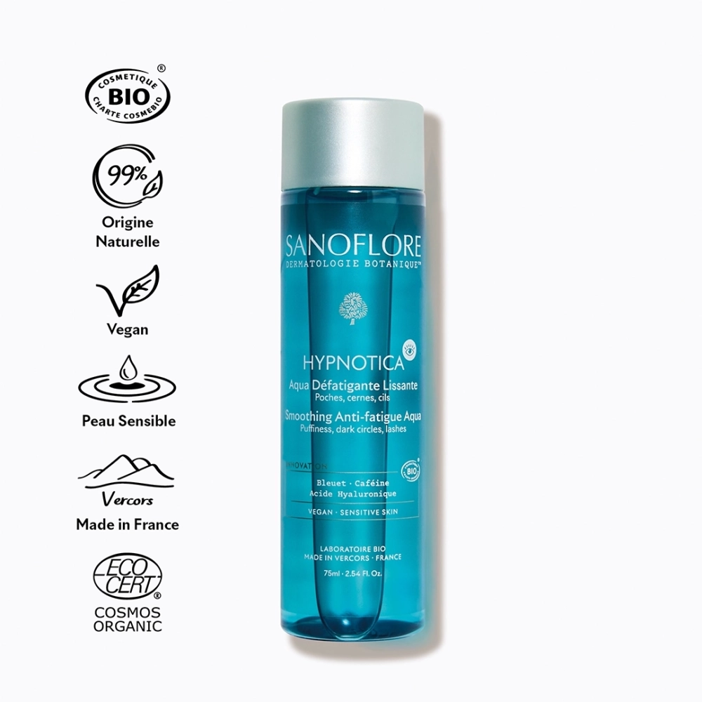 L'Aqua HYPNOTICA est une eau de soin botanique défatigante et lissante dédiée aux contours des yeux les plus sensibles.