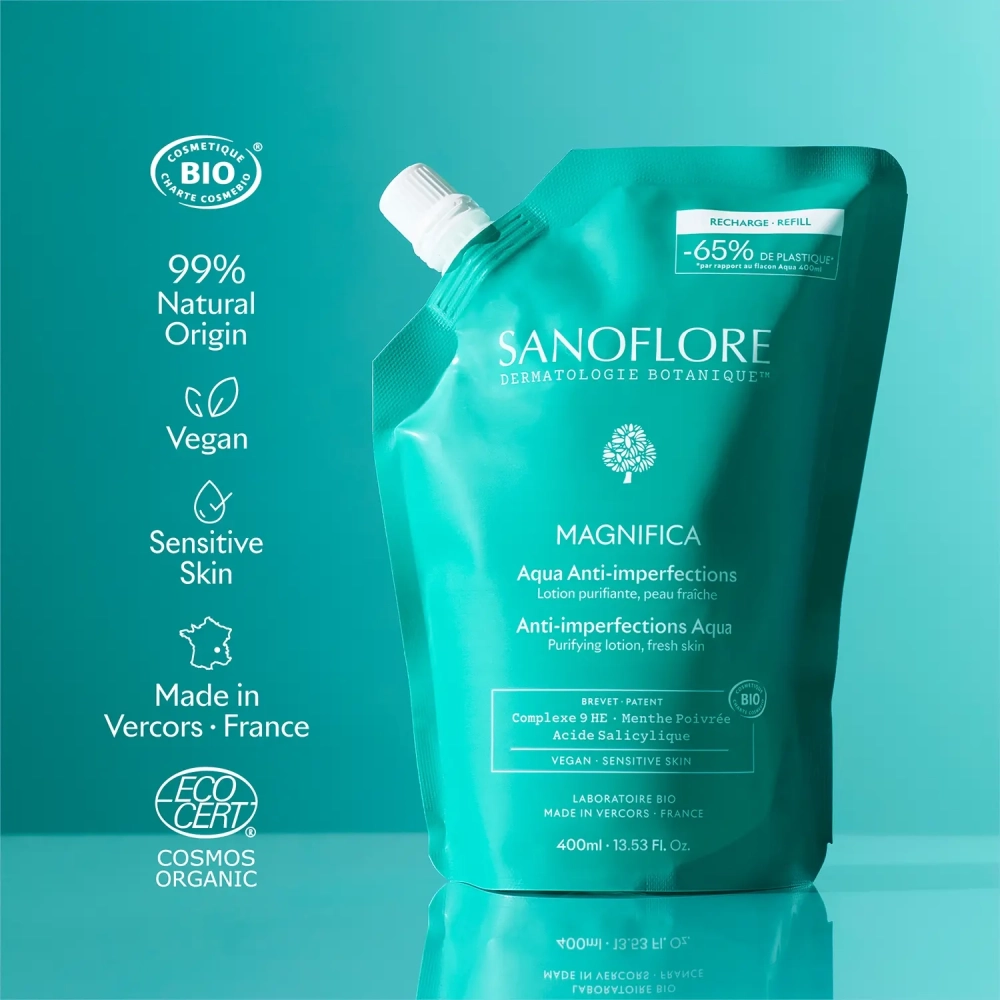 - Complexe Magnifica breveté : un complexe de 9 huiles essentielles bio, issu de 5 années de recherche et conçu pour contribuer à l’apparence d’une peau plus nette et équilibrée.