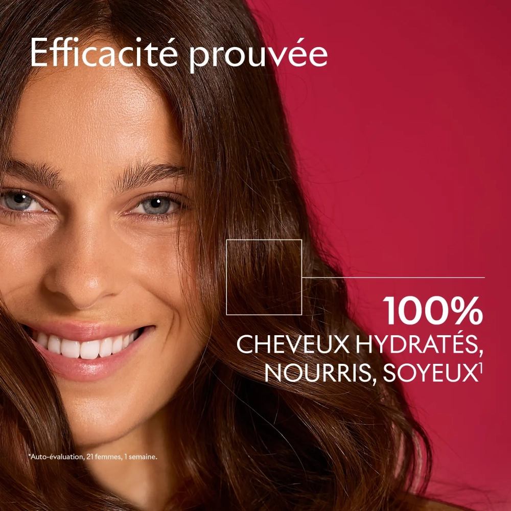 Appliquer sur cheveux essorés, des longueurs jusqu’aux pointes. Laisser agir 5 à 10 minutes. Démêler puis rincer.